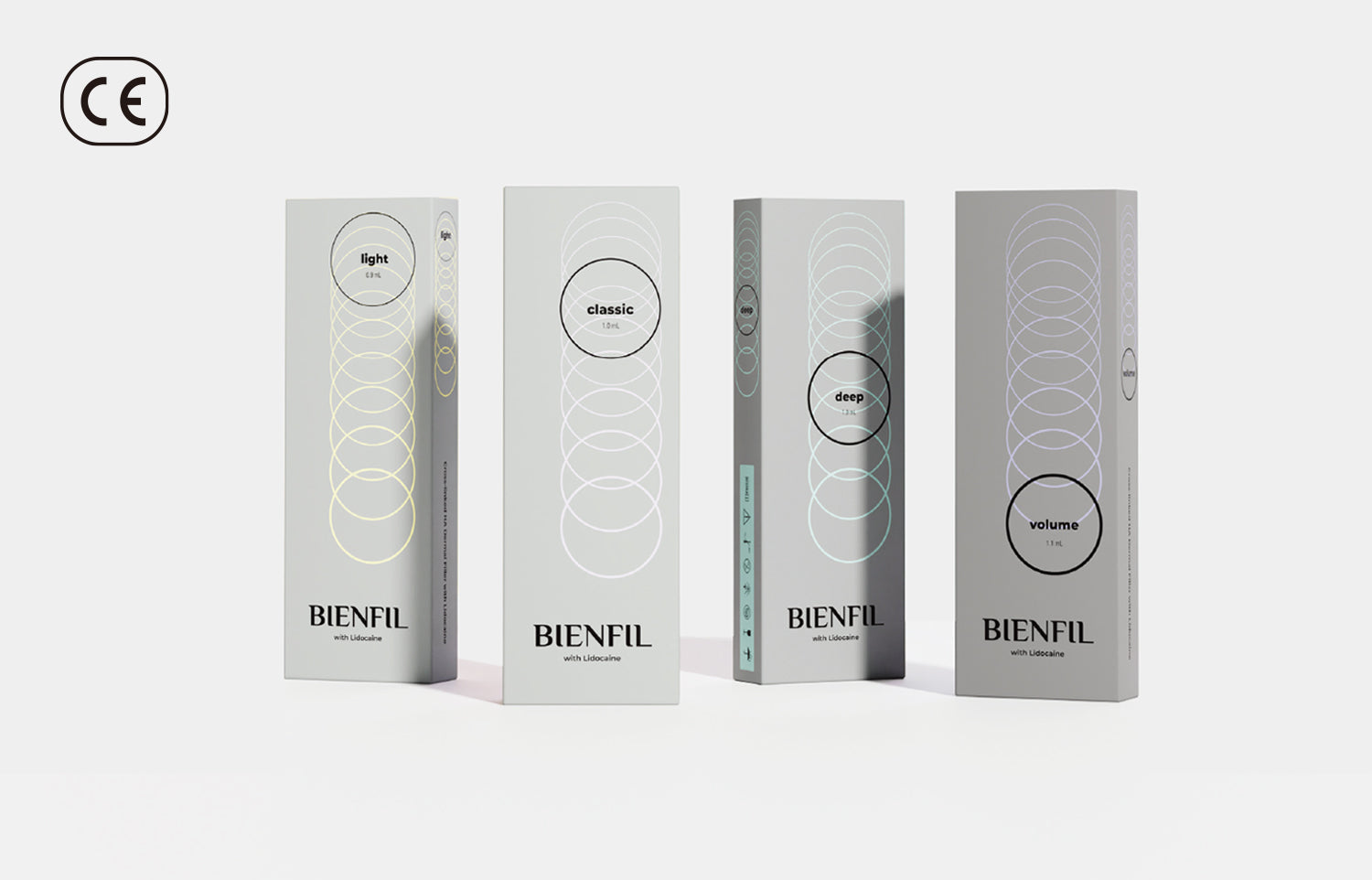 BIENFIL은 엄격한 품질 및 안전 기준 하에 제조된 히알루론산 더말 필러입니다. BDDE 함량을 낮추기 위해 철저한 품질 관리를 거치며, 이는 부작용을 최소화합니다. 정밀하게 관리되는 생산 공정을 통해 일관된 품질, 부드러운 주입감, 예측 가능한 시술 결과를 제공합니다.