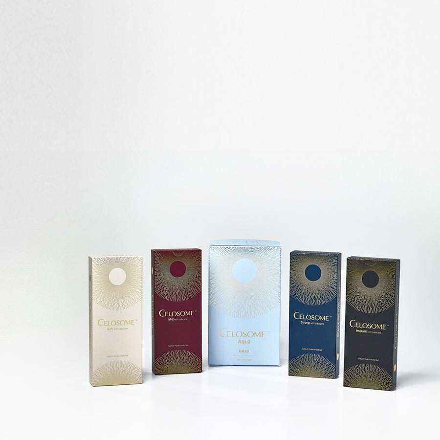 Celosome™ 필러는 히알루론산 기반의 안정화된 필러 시리즈로, 특수 HENM 가교 기술을 통해 생산되어 최상의 점탄성과 안전성을 확보했습니다. Celosome™ 필러의 다단계 멤브레인 정제를 통해 가교제인 BDDE를 완전히 제거하고 탈이온화 및 초순수 시스템을 사용하여 최종 제품의 내독소 및 기타 불순물 함량을 최소화합니다.