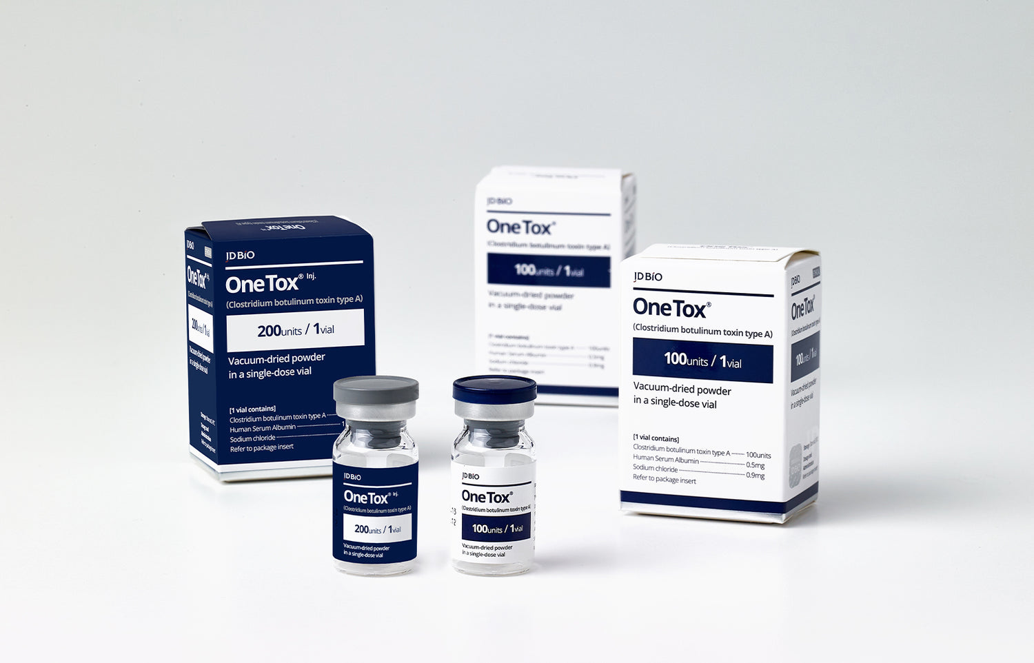 효과가 빠르고 오래 지속되는 보툴리눔 A형 톡신 One Tox®는 JDBIO의 대표 제품으로 근육 조직 활동을 교정하고 얼굴 부위의 주름을 완화하는데 사용됩니다.